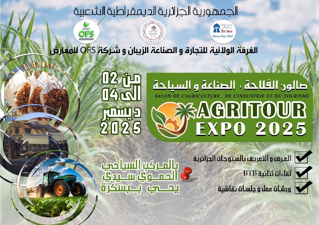 Nous avons le plaisir d’annoncer que CUISINOX prendra part à la prochaine édition du Salon de l’Agriculture, de l’Industrie et du Tourisme — AGRITOUR EXPO 2025, qui se tiendra du 2 au 4 décembre 2025 au complexe touristique Sidi Yahia à Biskra.